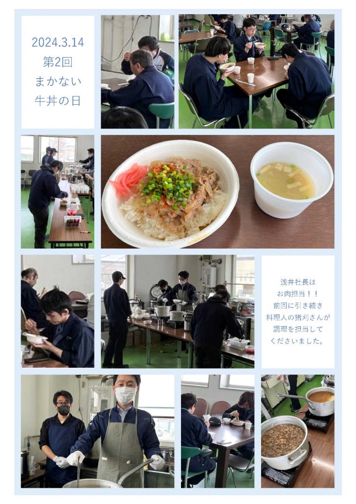 昼食に、まかないの「牛丼」が旭川工場の従業員に振舞われました。