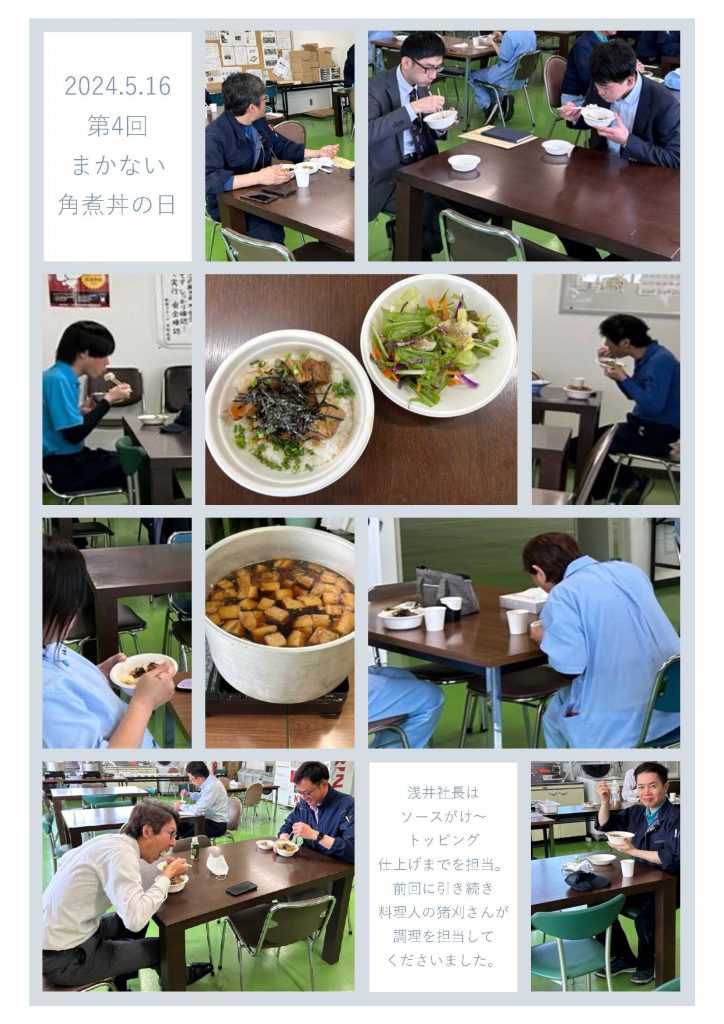 昼食に、まかないの「角煮丼」が旭川工場の従業員に振舞われました。