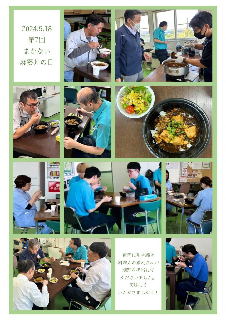 昼食に、まかないの「麻婆丼」が旭川工場の従業員に振舞われました。