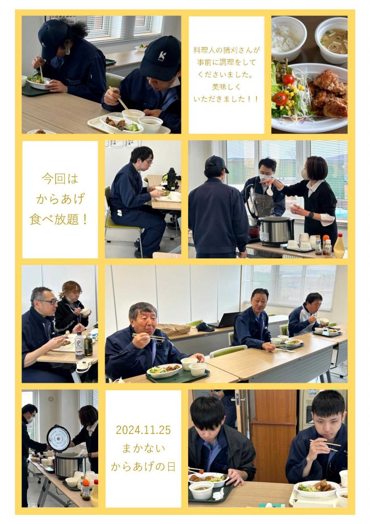 昼食に、まかないの「からあげ」が紋別工場の従業員に振舞われました。